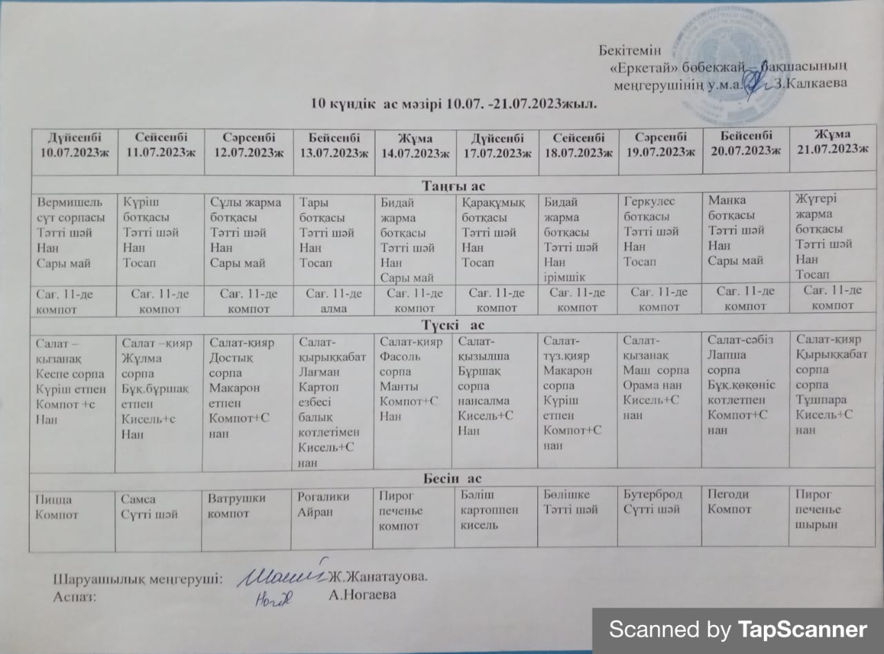 Ас мәзірі шілде айына он күндік