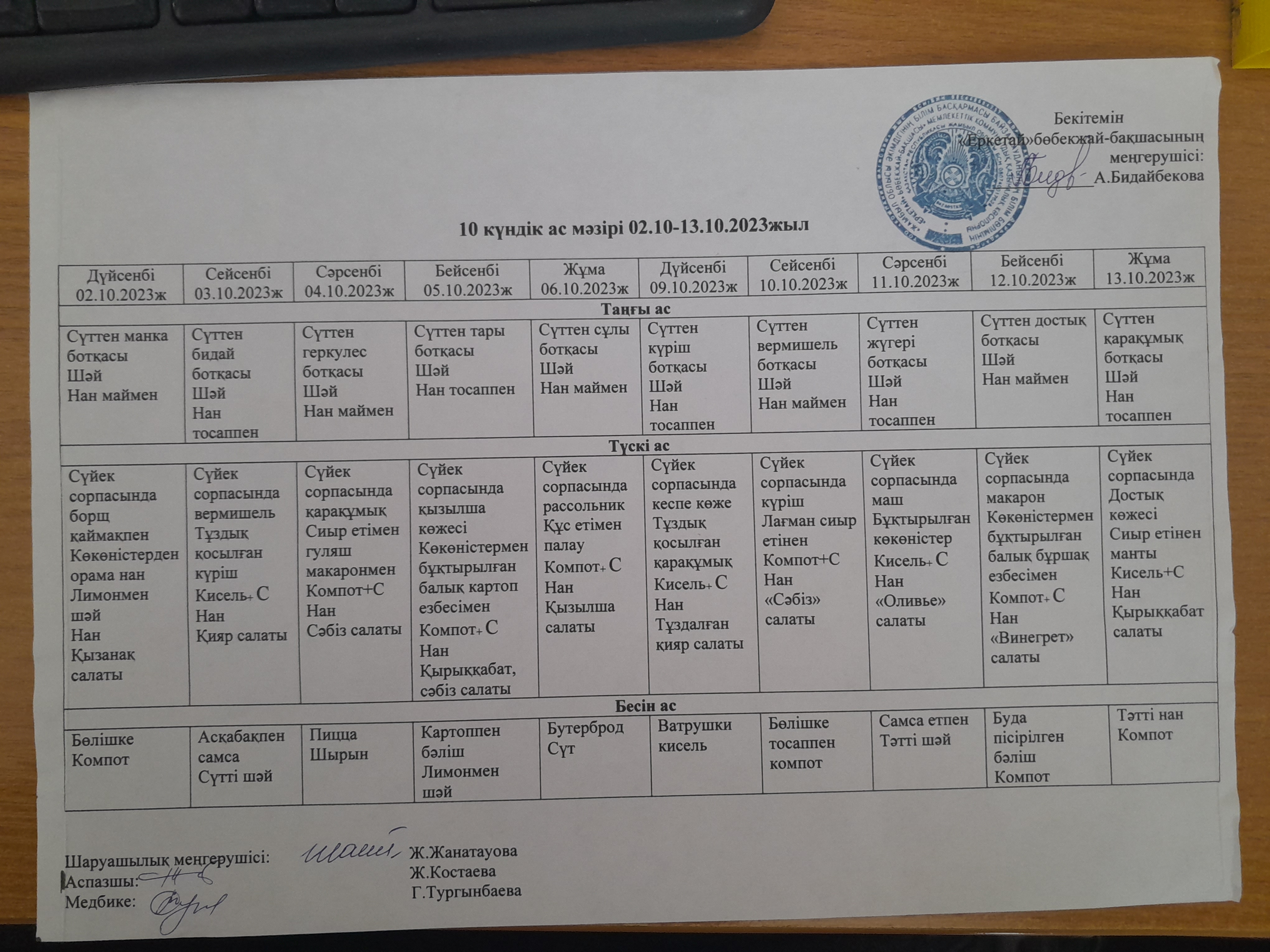 » 02.10.2023 ж-10.10.2023 ж Он күндік ас мәзірі