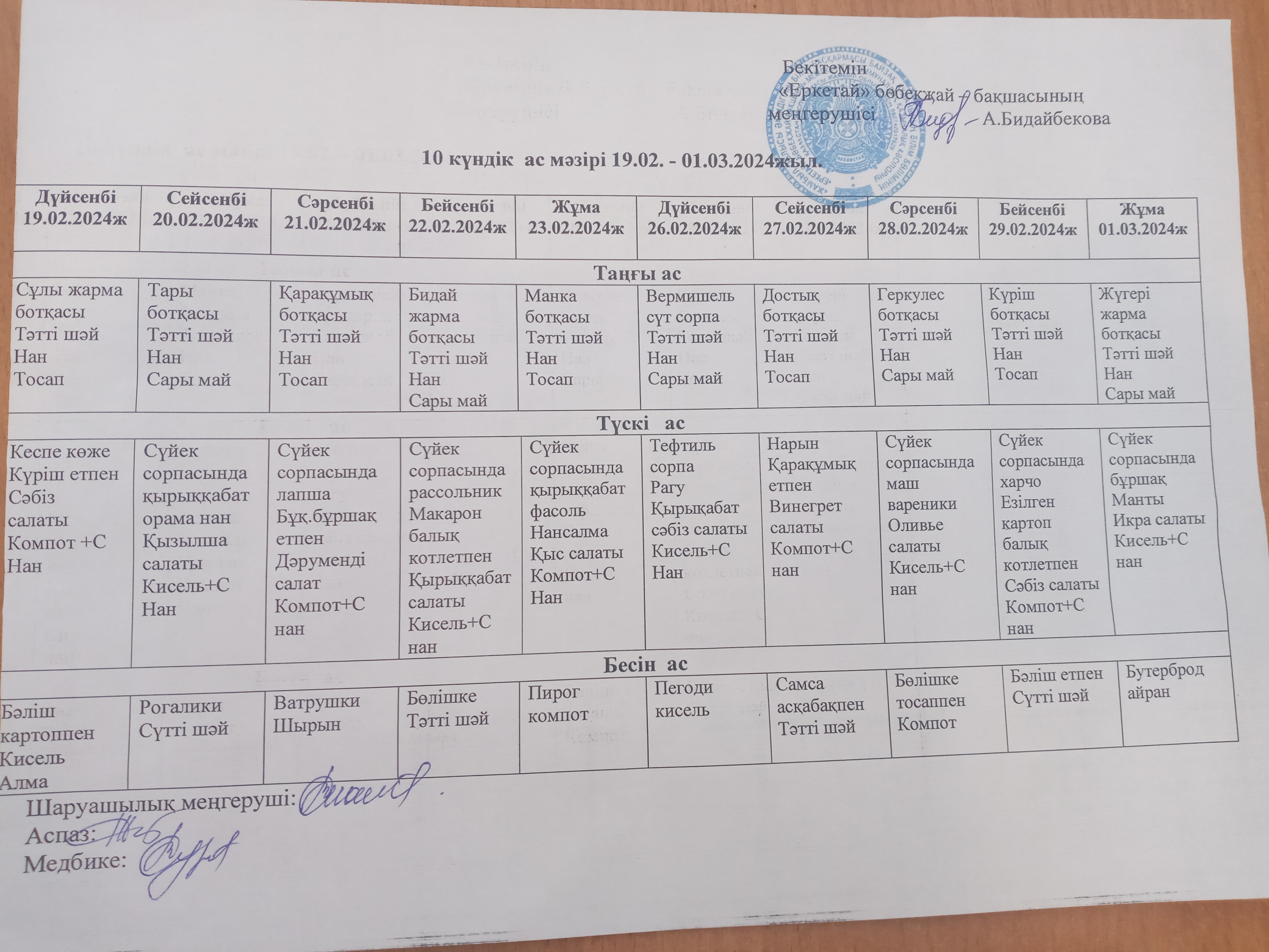 Қараша айына 10 күндік ас мәзірі