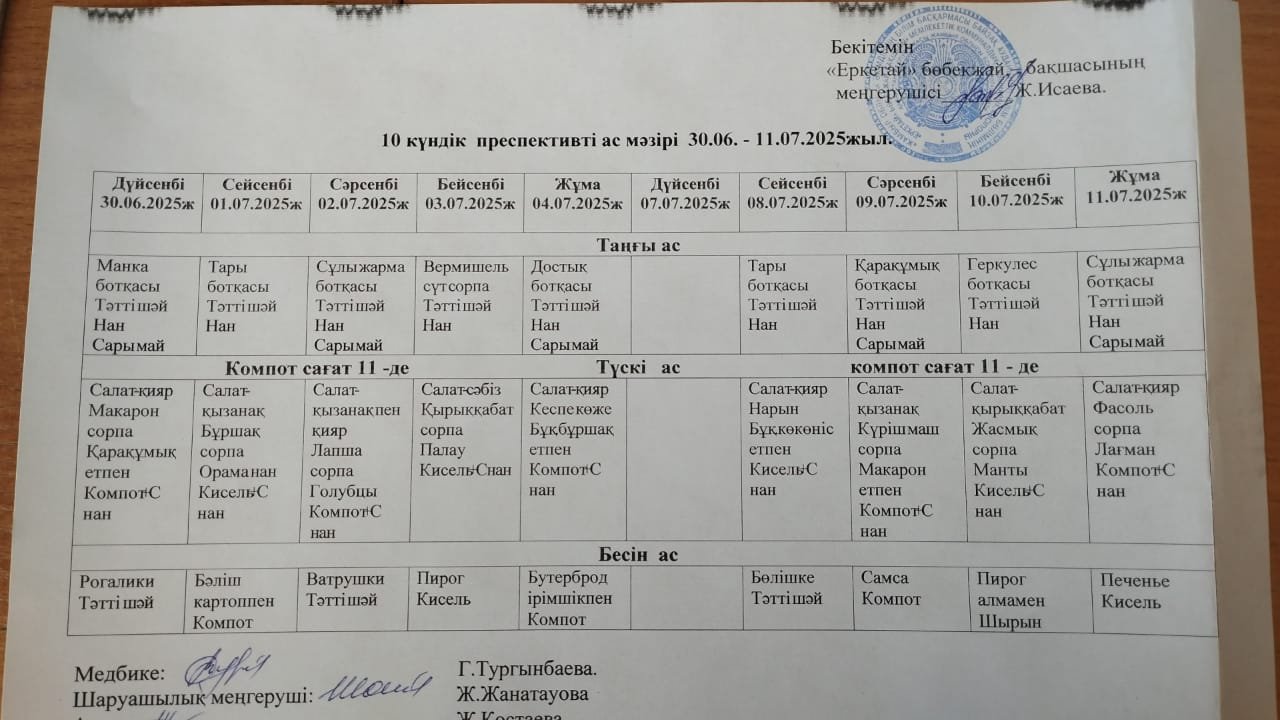 Қыркүйек айына 10 күндік ас мәзірі