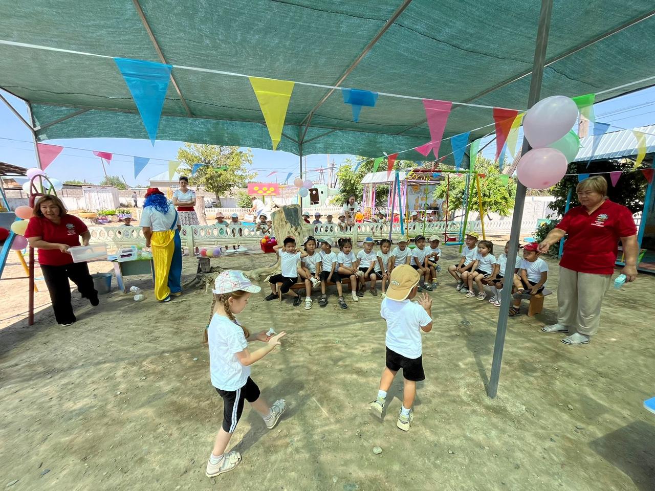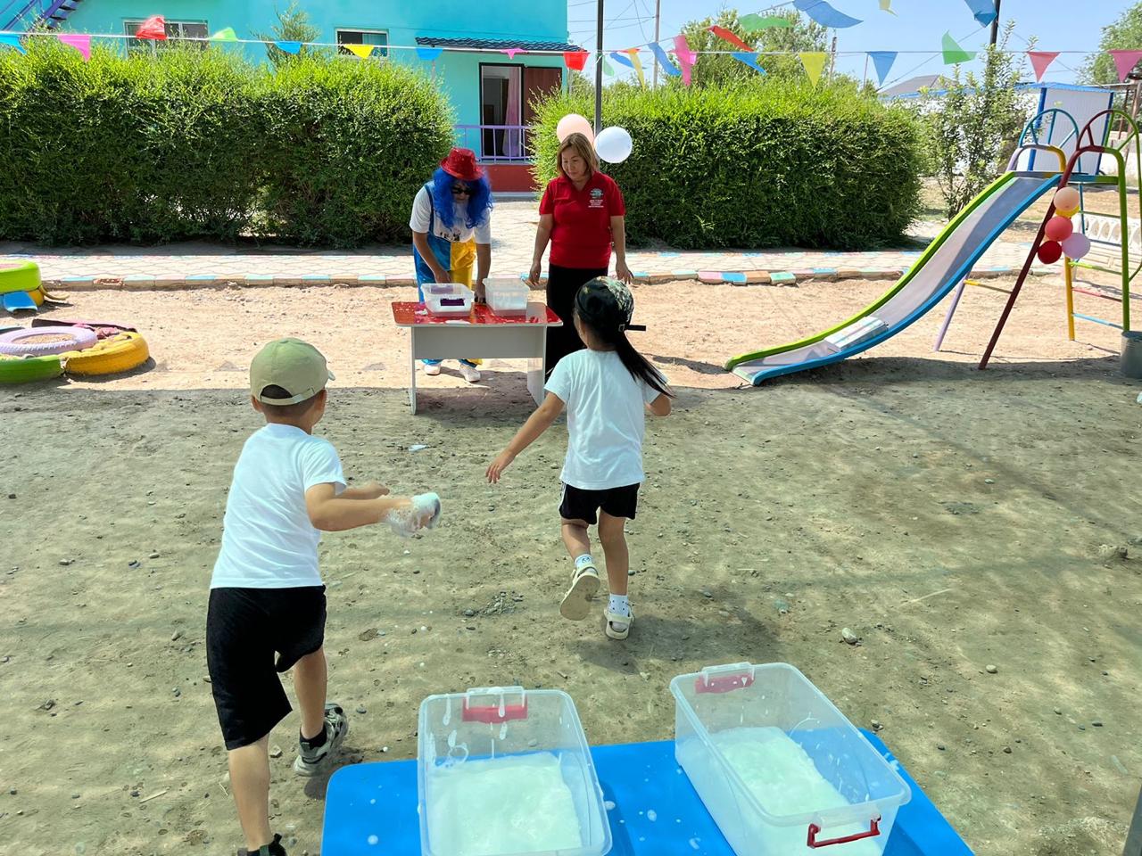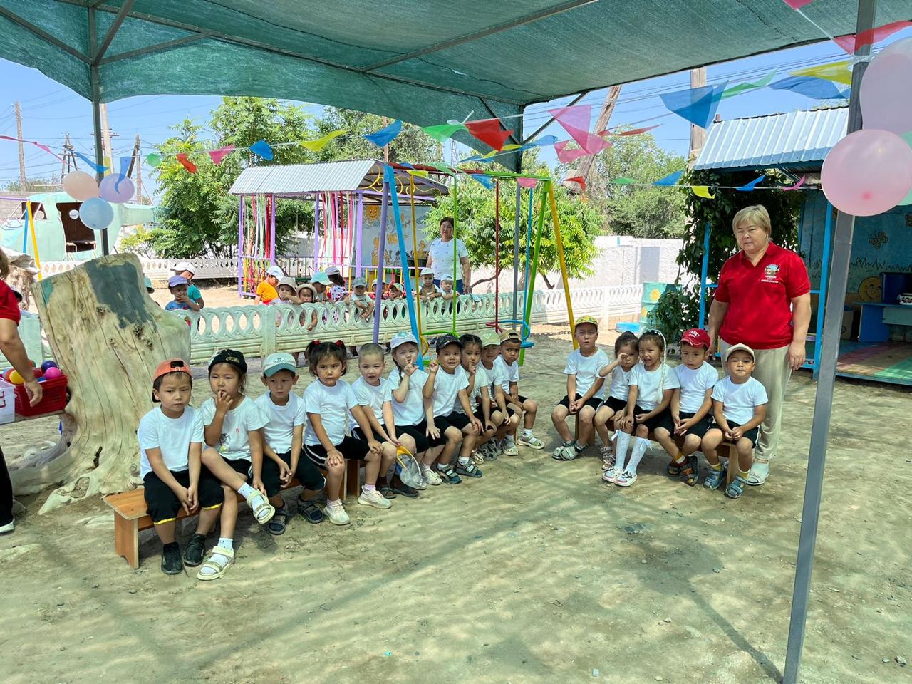 "Алақай, жайдарлы жаз келді" жазғы сауықтыру кезеңінің жоспарына сәйкес "Жазда келді,көңілді" апталығының сабын көпіршіктері ойын- сауығын "Күншуақ" ересек тобымен дене шынықтыру жетекшісі С.Базарова ұйымдастырды. Іс-шара барысында балалар сабын көпіршіктері туралы мәлімет ала отырып, түрлі дамытушы ойындар ойнады.