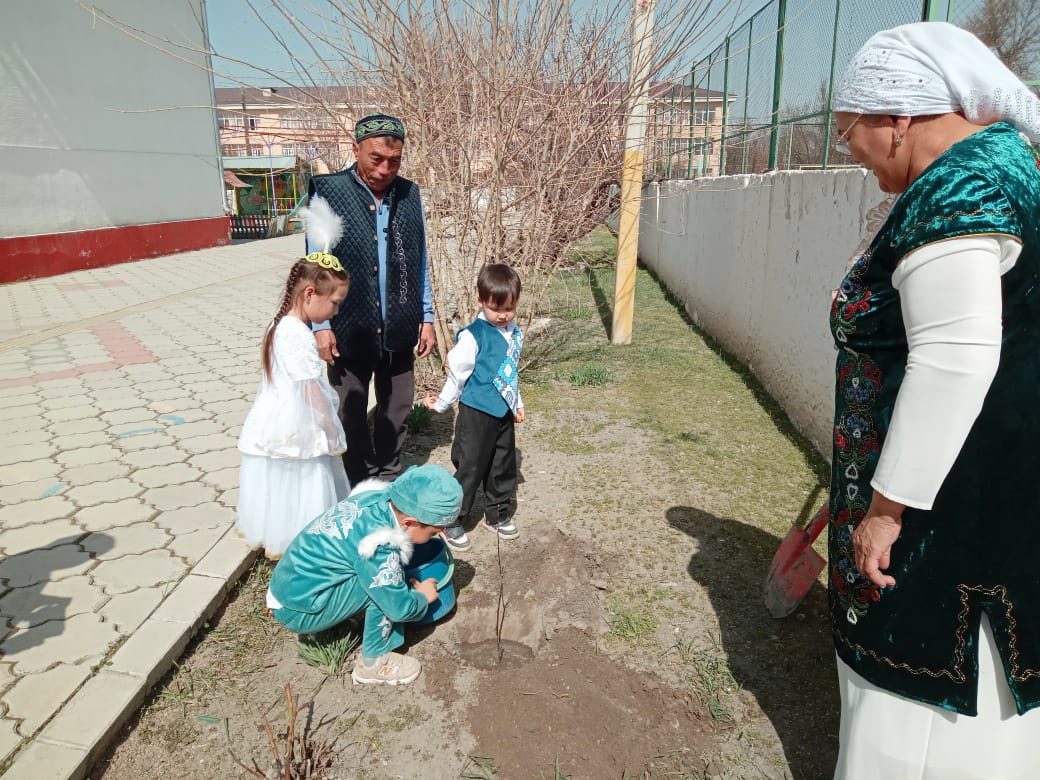 Жаңару күніде балалармен бірге жеміс ағашын егу
