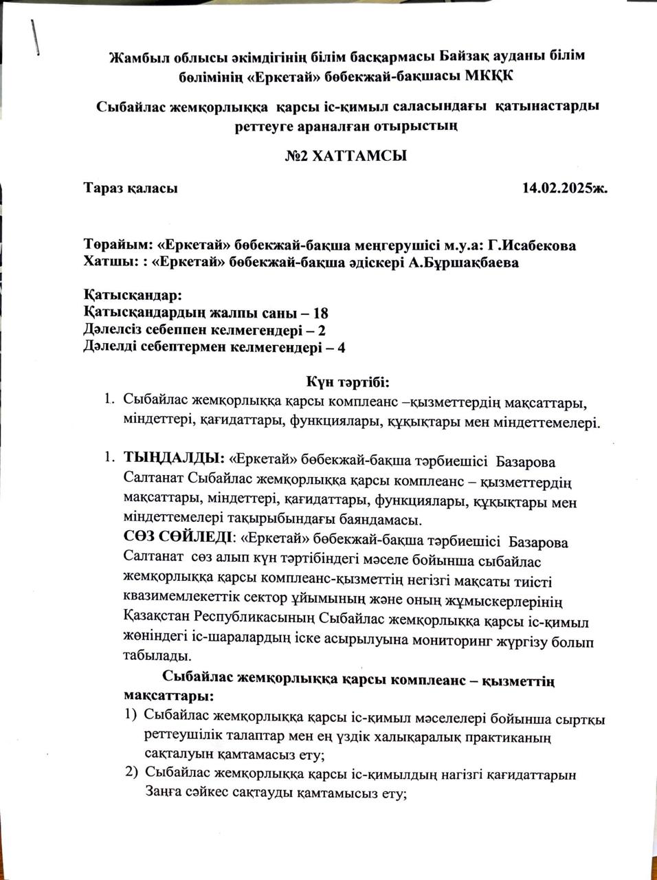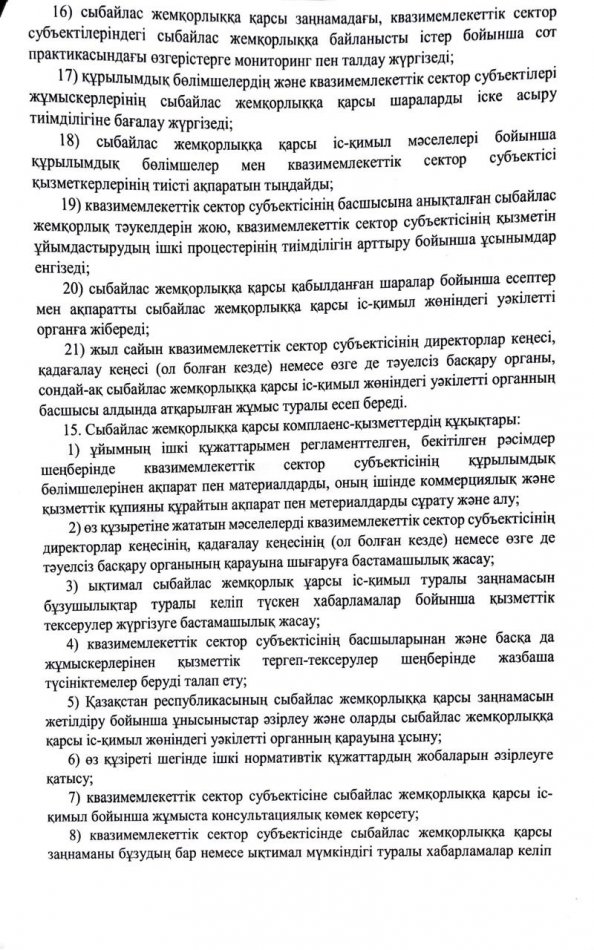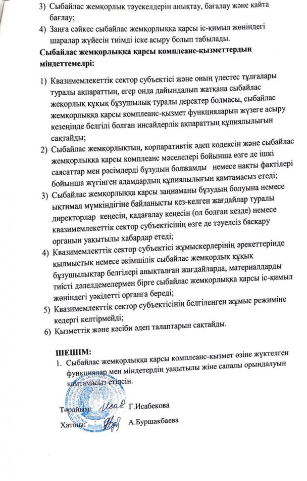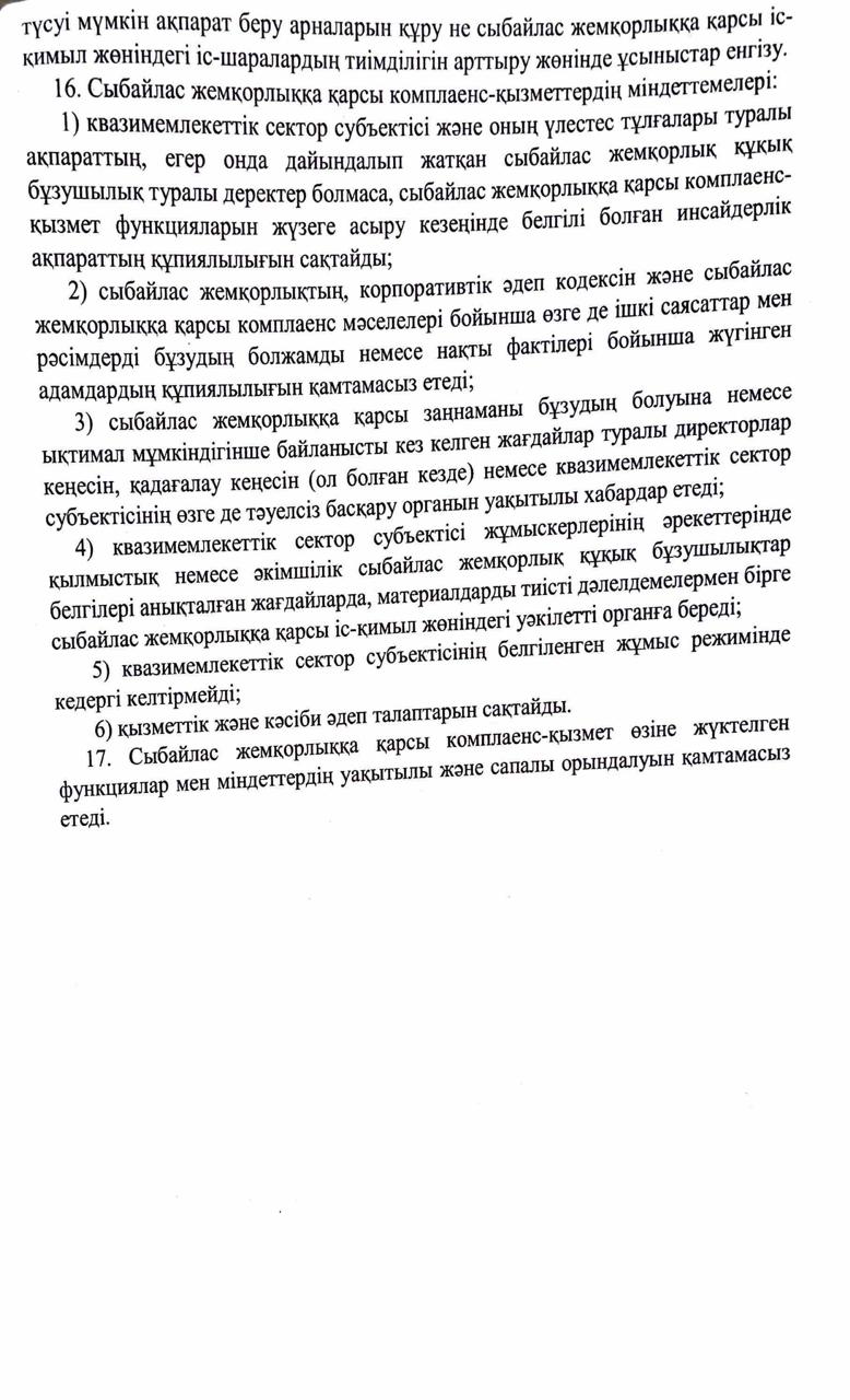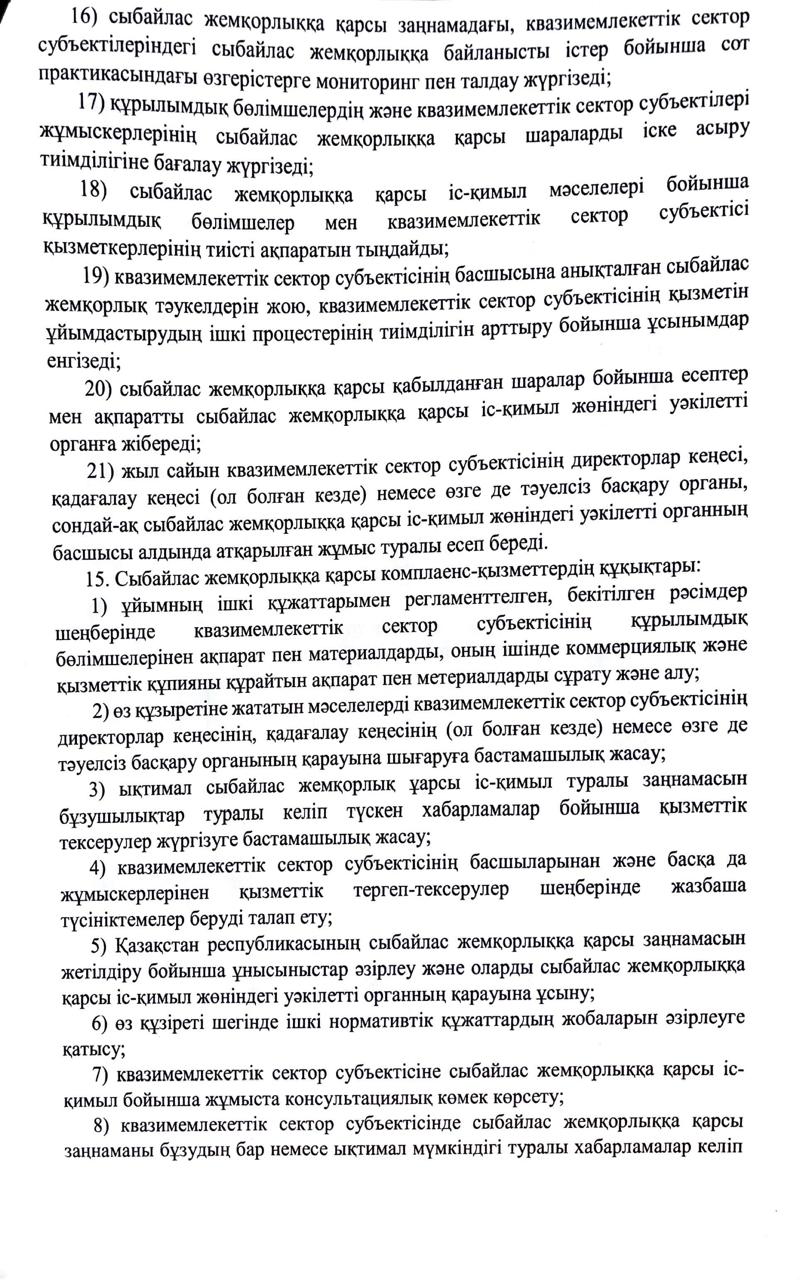 14 февраль 2025 0 1 2 3 4 5 Сыбайлас жемқорлыққа қарсы комплаенс қызметтердің мақсаттары, міндеттері, қағидаттары, функциялары, құқықтары мен міндеттемелері