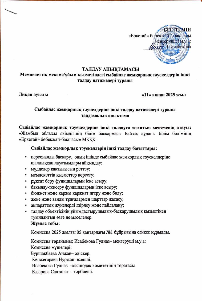 14 февраль 2025 0 1 2 3 4 5 Сыбайлас жемқорлық тәуекелдеріне ішкі талдау нәтижелері туралы талдамалық анықтама